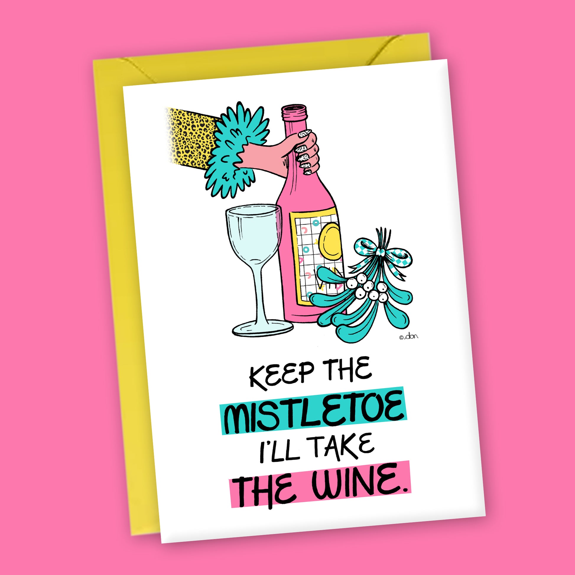 This Christmas season, share a laugh out loud moment with someone special thanks to this ‘Mistletoe and Wine’ Christmas card. The design has been printed to a high quality on recycled card and features a hand-drawn illustration of mistletoe and wine alongside the message ‘Keep the Mistletoe, I’ll Take the Wine.’
