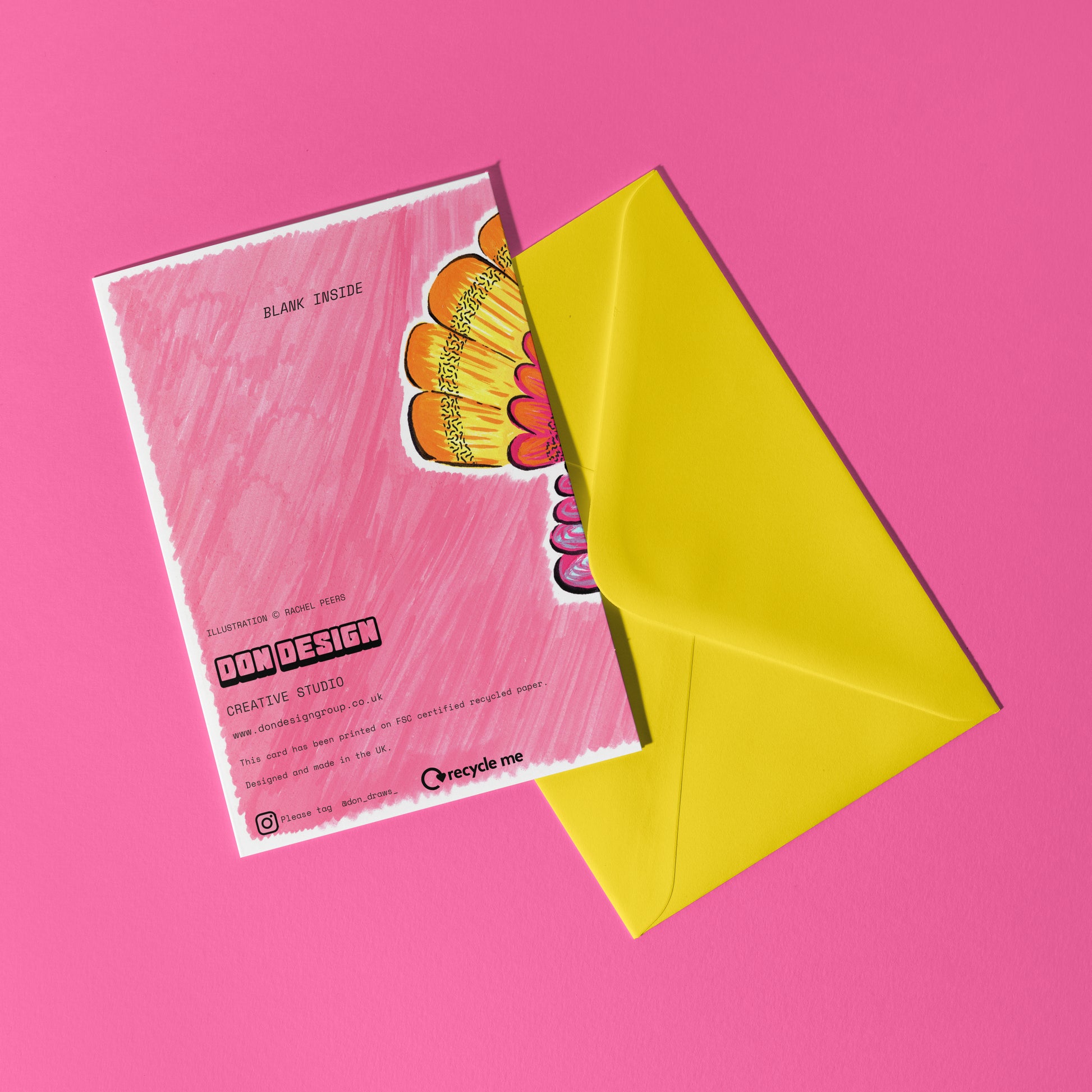 Envelope: Included, recycled yellow